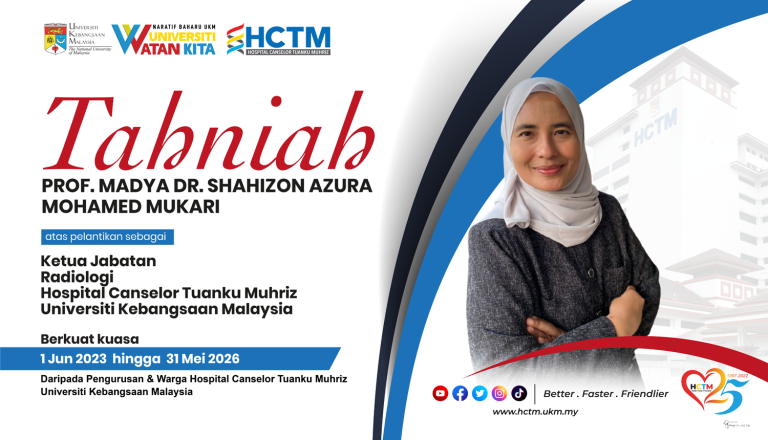 Tahniah Prof. Madya Dr. Faizah Mohd Zaki Atas Pelantikan Sebagai Ketua Radiologi HCTM UKM berkuat kuasa 1 Disember 2024 hingga...