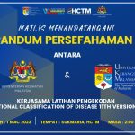 Majlis Menandatangani Memorandum Persefahaman (MOU) antara Kerajaan Malaysia yang diwakili oleh Kementerian Kesihatan Malaysia (KKM) dengan Universiti Kebangsaan Malaysia (UKM): Kerjasama Latihan Pengekodan International Classification of Disease 11th Version (ICD-11). Majlis disempurnakan dengan ucapan YBhg. Prof. Dato’ Dr. Hanafiah Harunarashid, Pro Naib Canselor Kampus Kuala Lumpur.