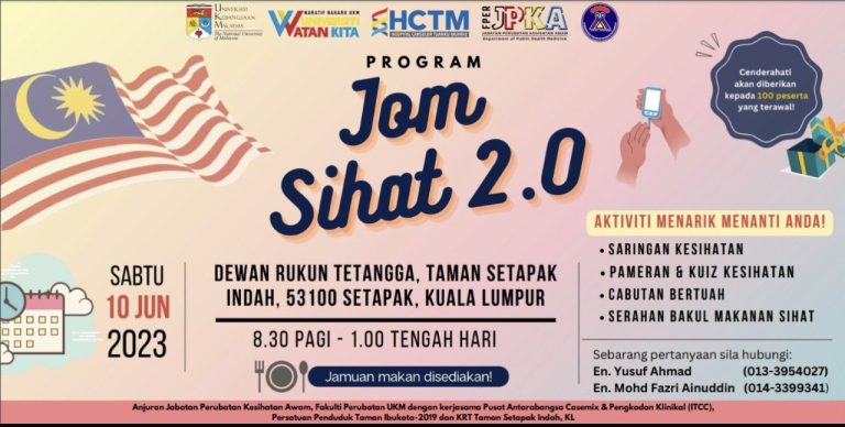 Program Jom Sihat 2.0 Masa : 8.30 pagi hingga 1.00 tengahari Tarikh : 10 Jun 2023 (Sabtu) Tempat : Dewan...