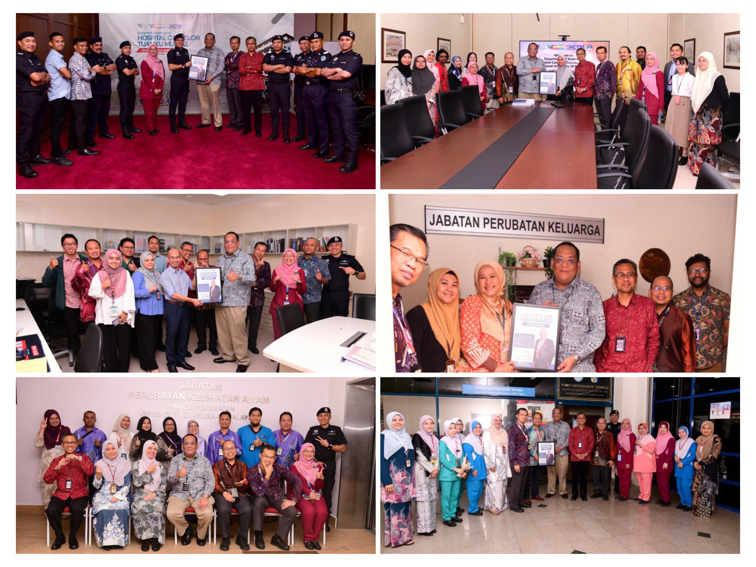 Turut hadir sama YBhg. Dato’ Dr. Azmi Baharudin, Pengarah HCTM, Prof. Madya Dr. Jamari Sapuan, Timbalan Pengarah (Perkhidmatan Surgeri), Dr. Zairul Azwan Mohd Azman, Timbalan Pengarah (Perkhidmatan Perubatan), Encik Mursidi Mursidi Ahamad, Timbalan Pengarah Pentadbiran, Puan Wan Omi Wan Yussop, Ketua Jabatan Kewangan, dan Puan Masrifah Zakaria, Ketua Jabatan Perkhidmatan Kejururawatan.