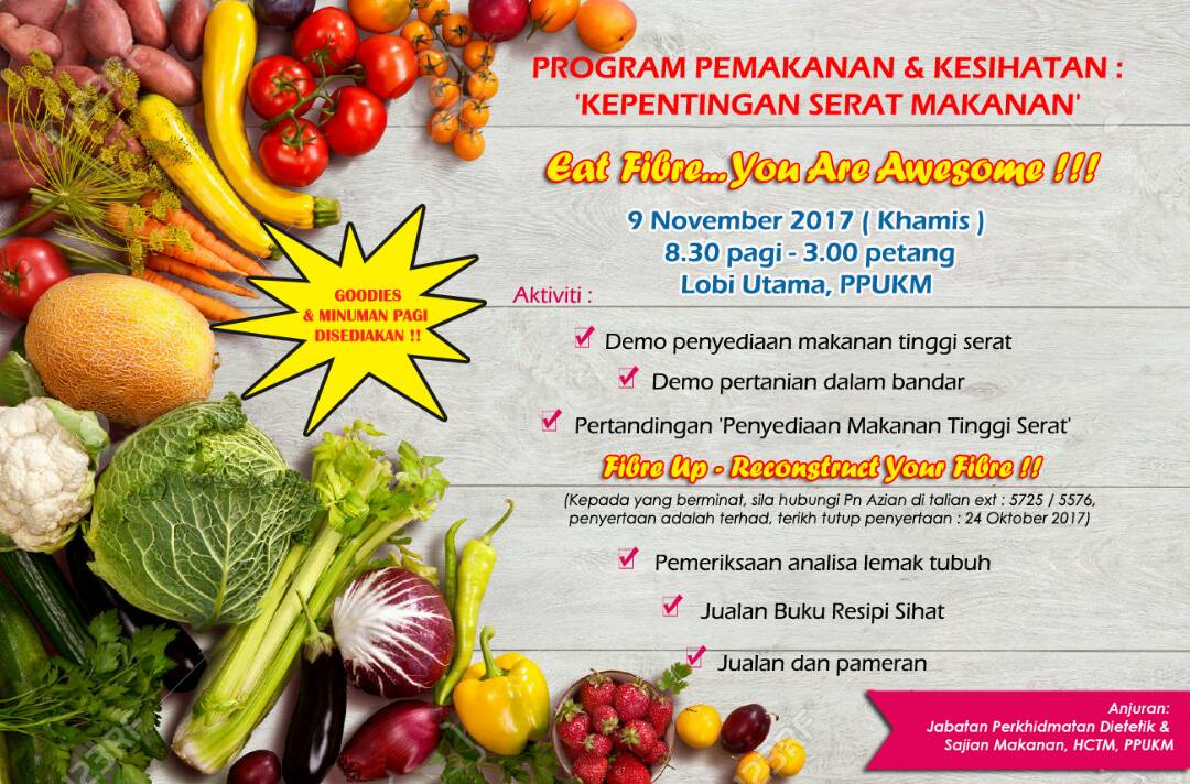 Pada 9 November 2017, satu program Pemakanan & Kesihatan bertajuk Kepentingan Serat Makanan telah diadakan di Lobi Utama, PPUKM.