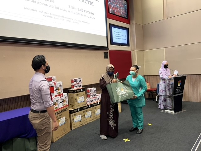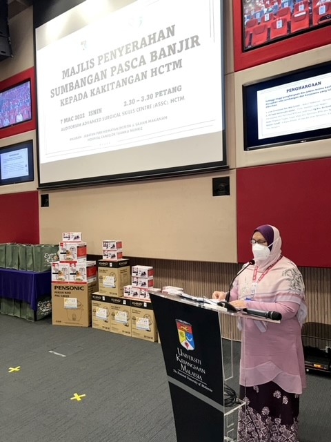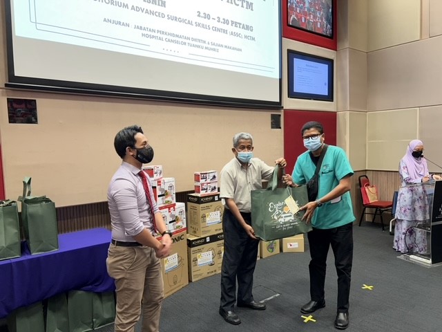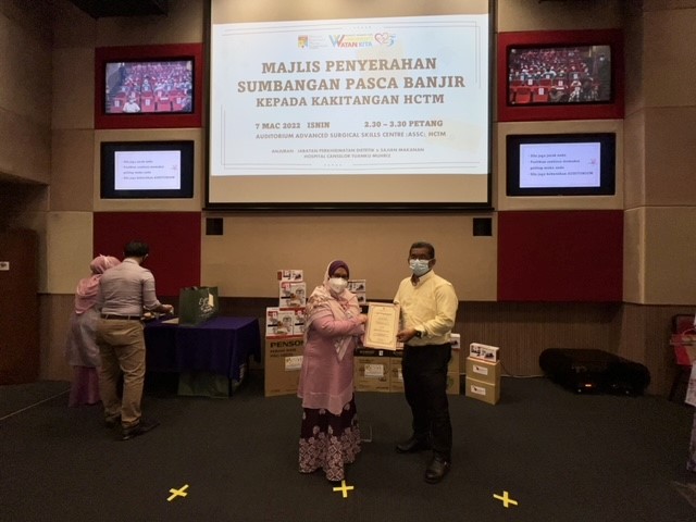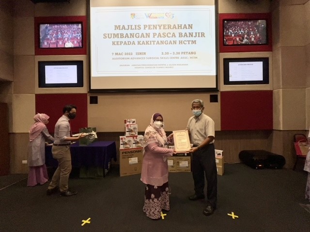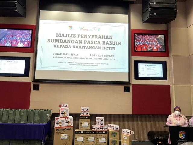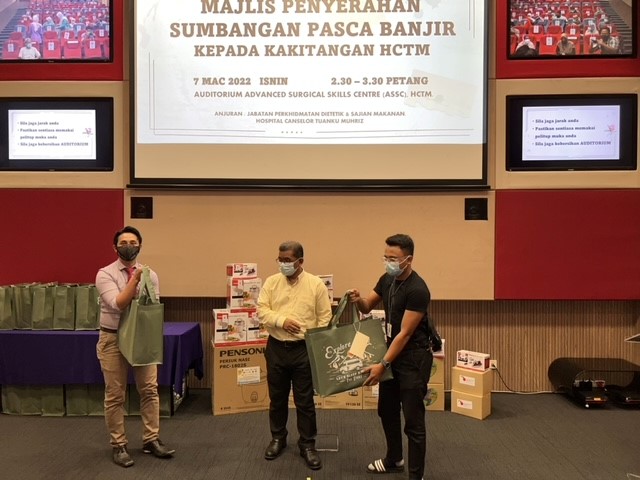 Program Khidmat Masyarakat ‘Majlis Penyerahan Sumbangan Pasca Banjir kepada Kakitangan HCTM’ anjuran Jabatan Perkhidmatan Dietetik dan Sajian Makanan (JPDSM) telah diadakan pada 07 Mac 2022 yang lalu, di Dewan Advanced Surgical Skills Centre, HCTM. Seramai 17 orang kakitangan HCTM telah telah menerima sumbangan tersebut. Penyampaian Sumbangan Pasca Banjir kepada Kakitangan Hospital Canselor Tuanku Muhriz telah diserahkan oleh Yang Berusaha Puan Nurul Liza Mohamad (Ketua Jabatan Perkhidmatan Dietetik & Sajian Makanan) ,Yang Berusaha Encik Kuek Po Guan (Pegawai Tugas-Tugas Khas Ahli Parlimen Bandar Tun Razak), Yang Berusaha Encik Sha’ari Yusoff (Pegawai Khas Ahli Parlimen Bandar Tun Razak) dan Yang Berusaha Puan Jumeah Selamat (Pengarah Urusan/ Kewangan LIVE Consistent Sdn Bhd).