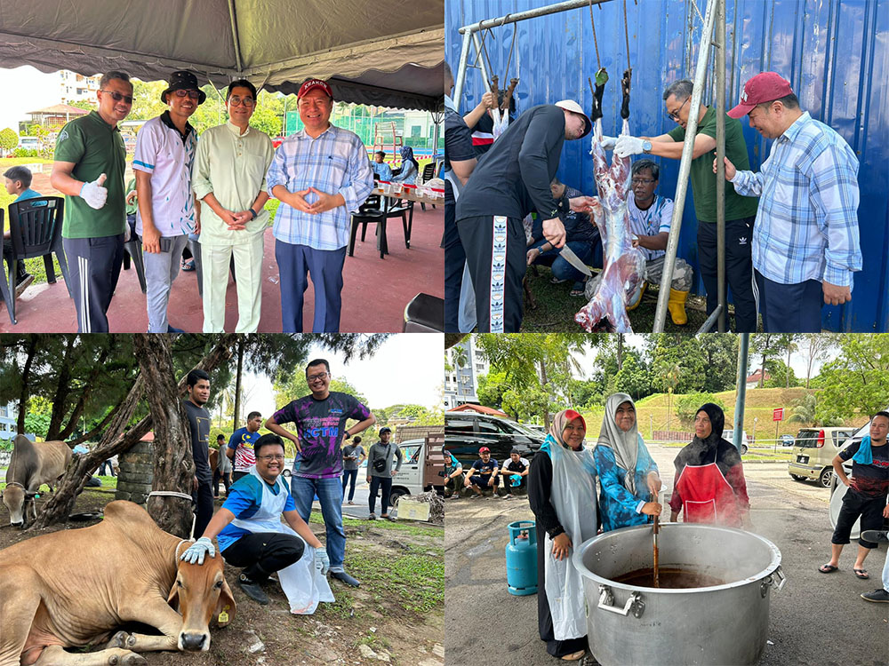 CHERAS, 19 Jun 2024 – Program Korban dan Akikah anjuran Surau Ibnu Sina, Hospital Canselor Tuanku Muhriz telah dilaksanakan pada 10 Zulhijah 1445H selepas selesai Solat Sunat Aidiladha. Hampir 200 orang kakitangan yang hadir telah bertugas sebagai sukarelawan untuk menumbangkan 10 ekor lembu dan tiga (3) ekor kambing untuk ibadah korban pada tahun ini. Program dijalankan secara gotong-royong bermula dengan melapah daging, memotong, mengagih seterusnya menyediakan juadah makan tengah hari untuk kakitangan dan hadirin yang hadir.