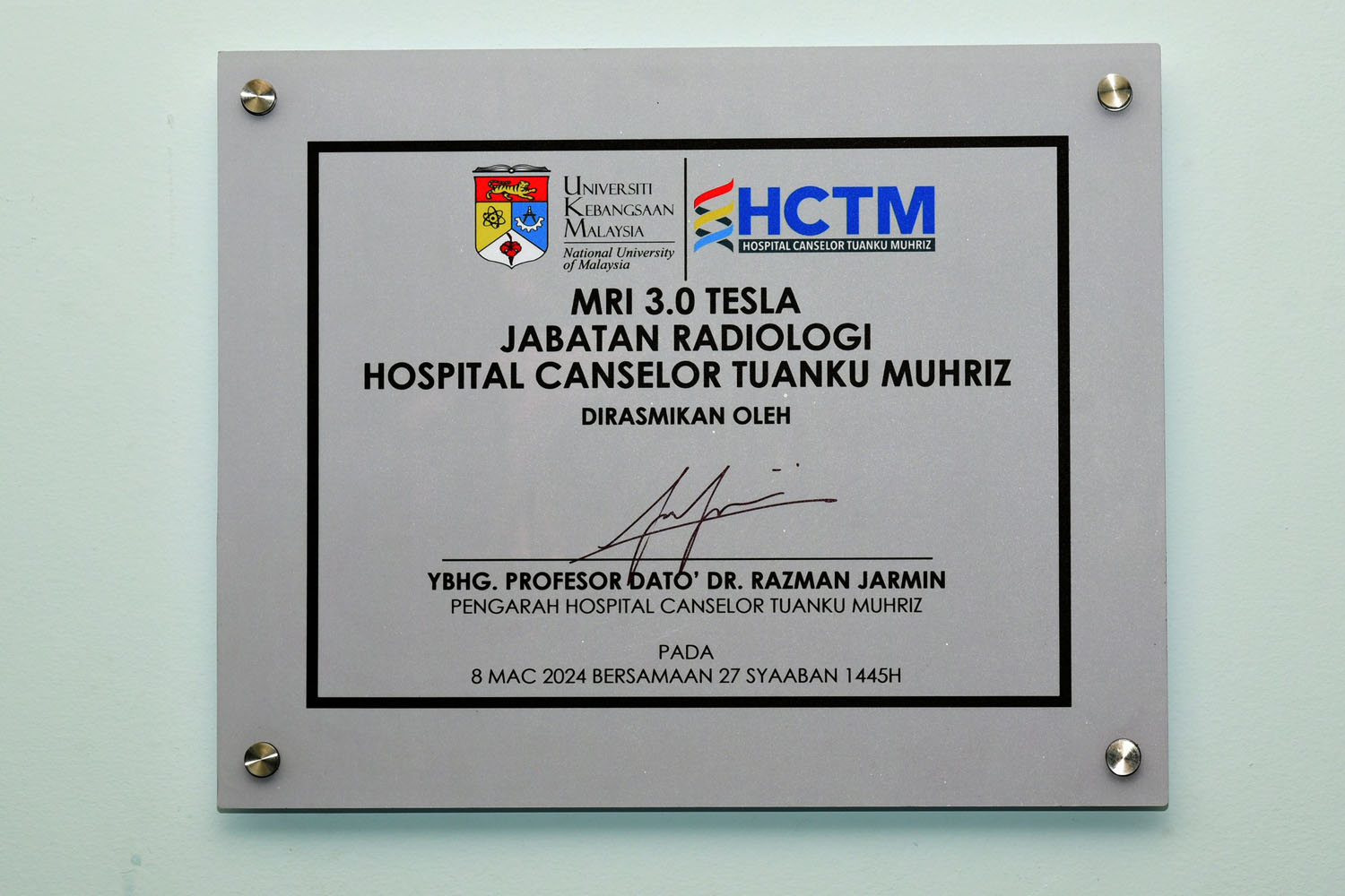 CHERAS, 8 March 2024 – YBhg. Prof. Dato' Dr. Razman Jarmin, Director of Hospital Canselor Tuanku Muhriz UKM, has completed the opening ceremony of the 3 TESLA MRI Machine of the Department of Radiology at the Meeting Room of the Department of Radiology Services, HTCM Clinical Block, today.