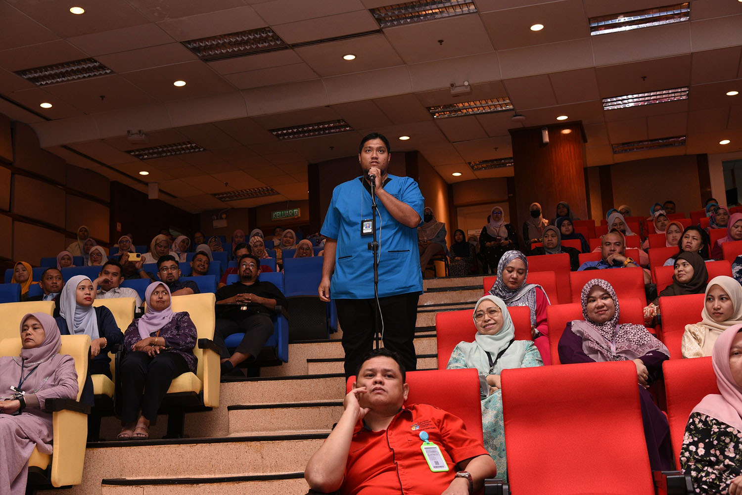 At this gathering, HCTM staffs were given the opportunity for a question and answer session with HCTM Management, offering them a platform to express their views and suggestions directly. The event also marked the Launch of the i-Doctor Podcast, organized by the Jabatan Multimedia dan Penyiaran, HCTM, and the Symbolic Signing Ceremony of the HCTM Occupational Safety, Health, and Environment Policy.