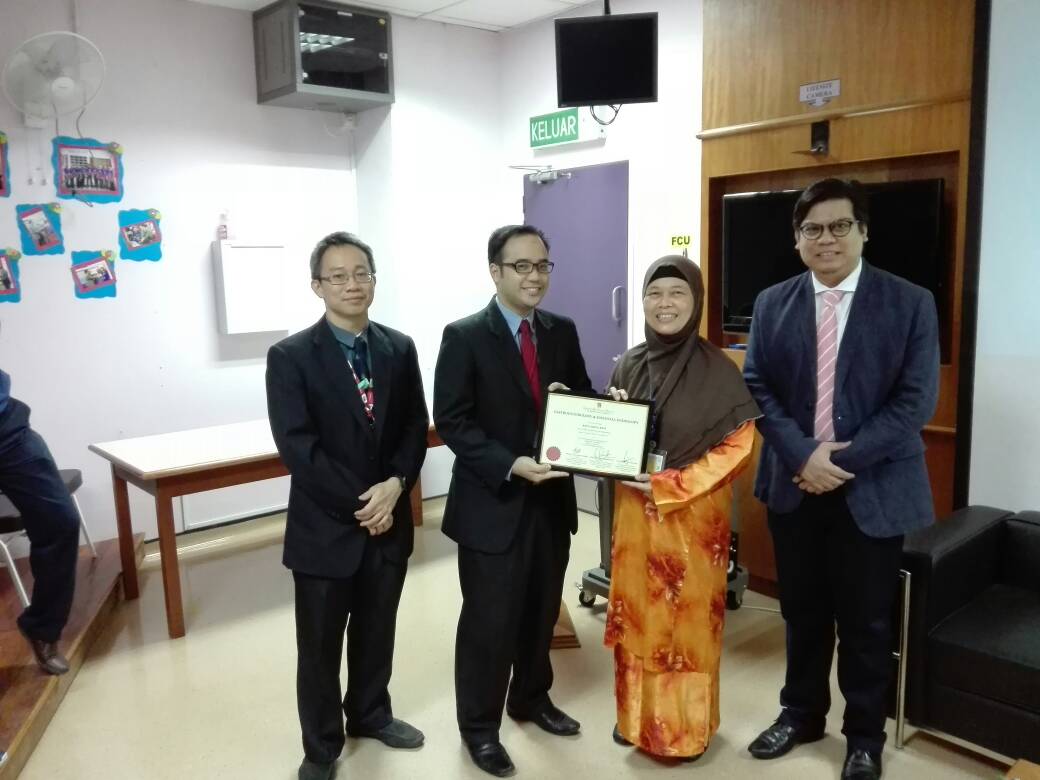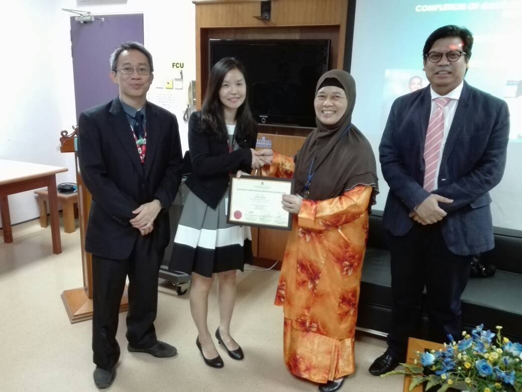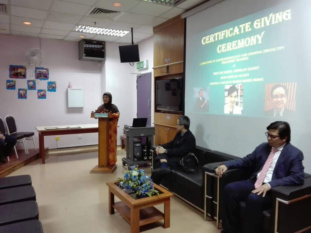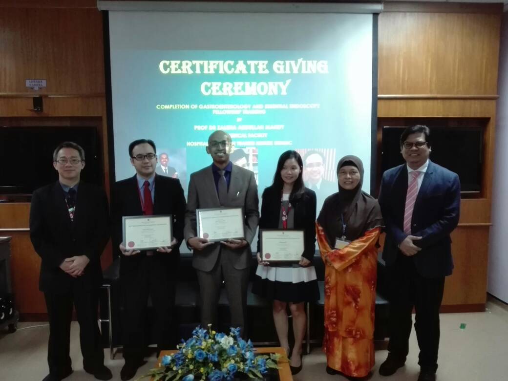 Tahniah diucapkan kepada Dr. Wong Zhiqin, Dr Jeevinesh Naidu dan Dr Rafiz Abd Rani atas penganugerahan fellowship training GASTROENTEROLOGY & ESSENTIAL ENDOSCOPY. Sijil telah disampaikan oleh Dekan Fakulti, YBhg. Prof. Dr. Zaleha Abdullah Mahdy.
