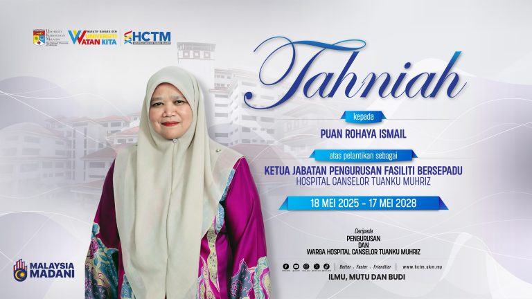 Tahniah diucapkan kepada Encik Mohd Faizor Hj Hassan, Ketua Unit Kemudahan Sokongan, Jabatan Pengurusan Fasiliti Bersepadu, HCTM di atas kenaikan...
