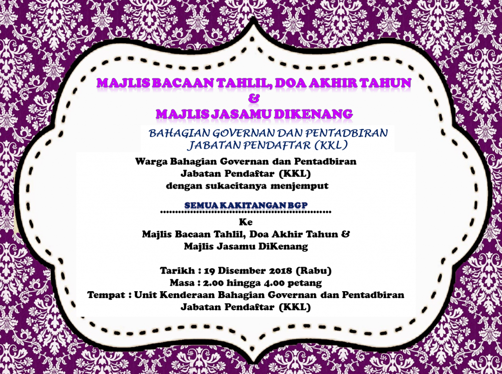 Majlis Bacaan Tahlil, Doa Akhir Tahun & Jasamu Dikenang