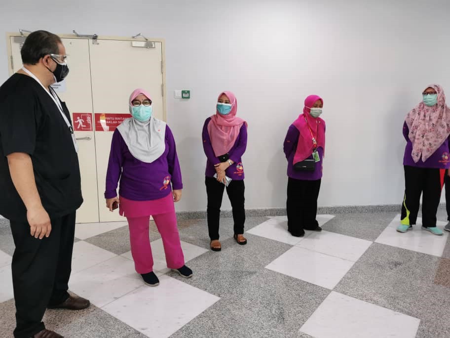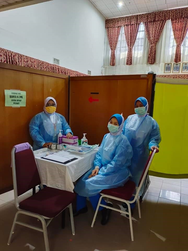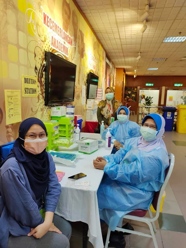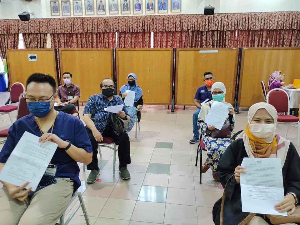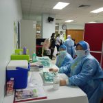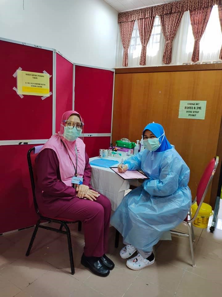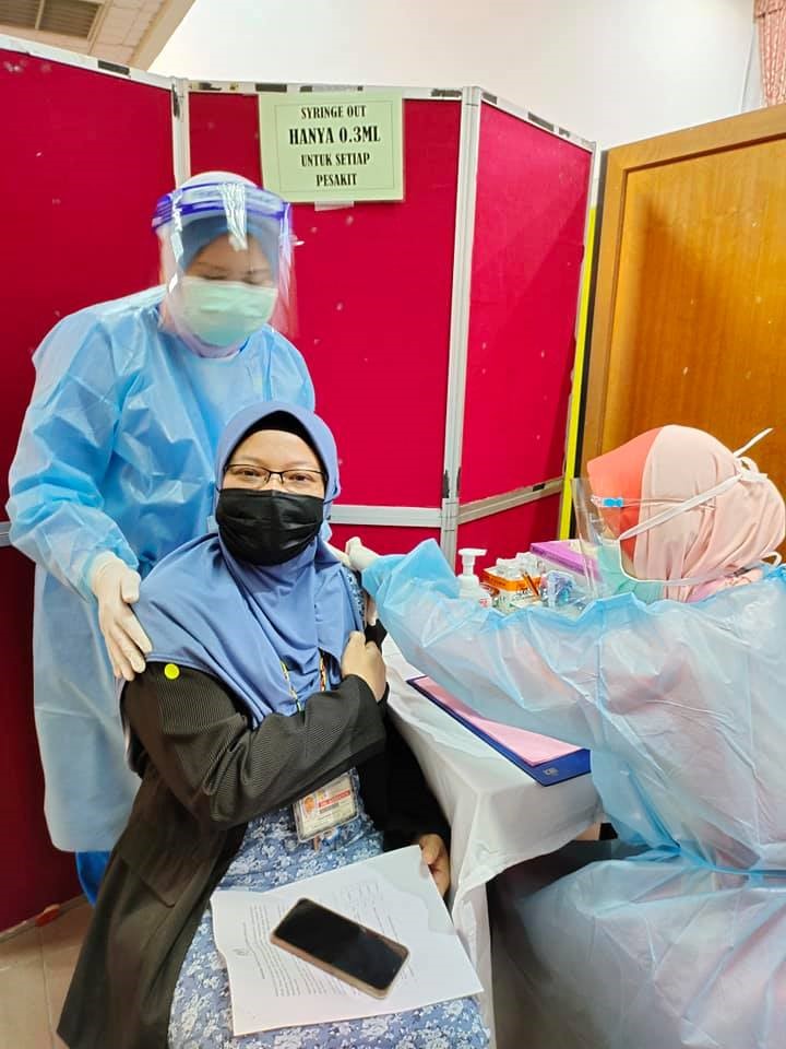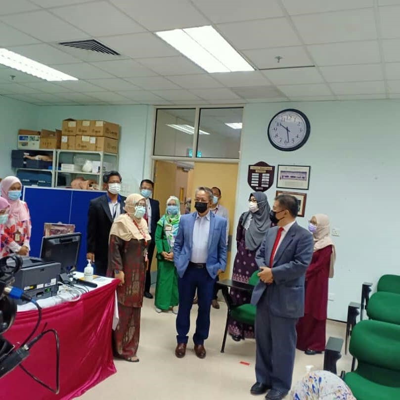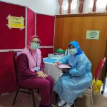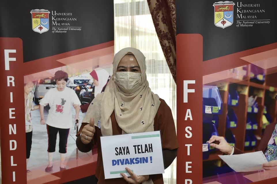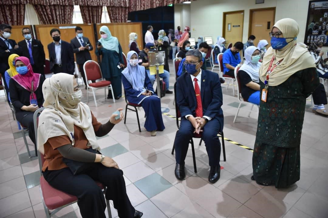 29 Mac 2021 – YB Dato’ Sri Sr. Noraini Binti Ahmad, Menteri Pengajian Tinggi telah mendapatkan vaksinasi di Pusat Pemberian Vaksin HCTM. Taklimat ringkas telah diberikan oleh Dr. Sharifa Azura Salleh, Ketua Unit Kawalan Infeksi, merangkap Ketua Penyelaras Pusat Pemberian Vaksin (PPV) HCTM mengenai program vaksinasi yang telah dijalankan mulai 1 Mac 2021 sehingga kini. Program vaksinasi ini akan berlangsung secara berperingkat selama 6 minggu melibatkan 4,134 kakitangan. Vaksin Pfizer ini diberikan kepada kakitangan barisan hadapan yang bertugas di Hospital Canselor Tuanku Muhriz (HCTM), Fakulti Perubatan UKM, Fakulti Pergigian UKM, Fakulti Farmasi UKM, Institut Biologi Molekul Perubatan, UKM (UMBI), Hospital Pakar Kanak-kanak, UKM dan Pusat Kesihatan Universiti, UKM.