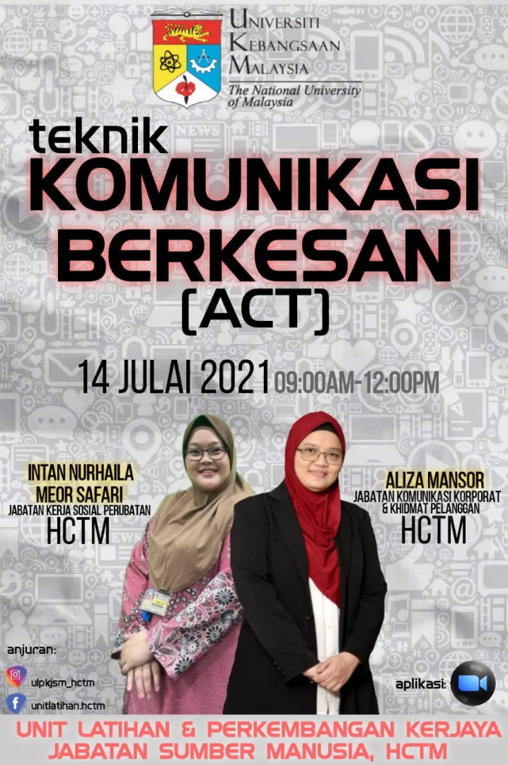 Kursus Komunikasi Berkesan (ACT) anjuran Unit Latihan & Perkembangan Kerjaya Jabatan Sumber Manusia, HCTM telah diadakan pada 14 Julai 2021 bermula...