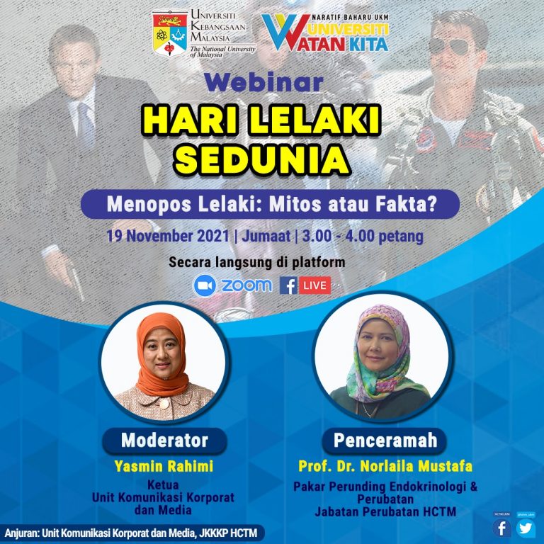 Sempena Bulan Hari Lelaki Sedunia, webinar 'Menopos Lelaki: Mitos atau Fakta?' akan diadakan pada 19 November 2021 secara zoom dan...