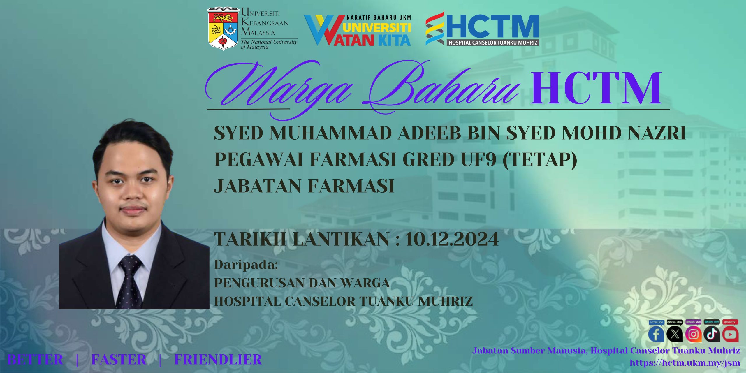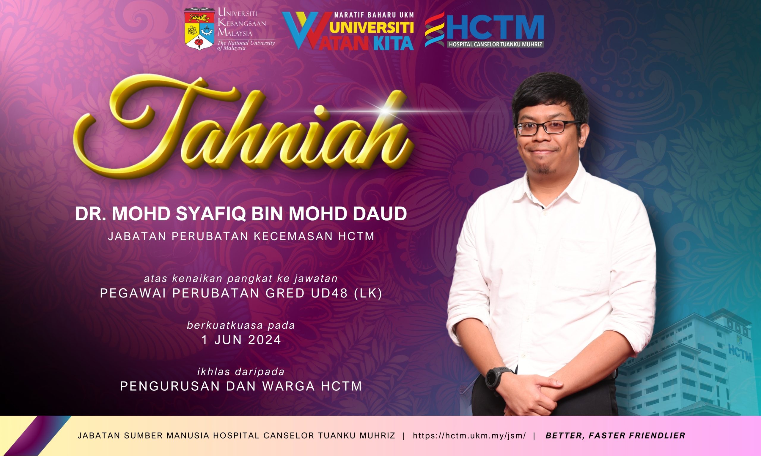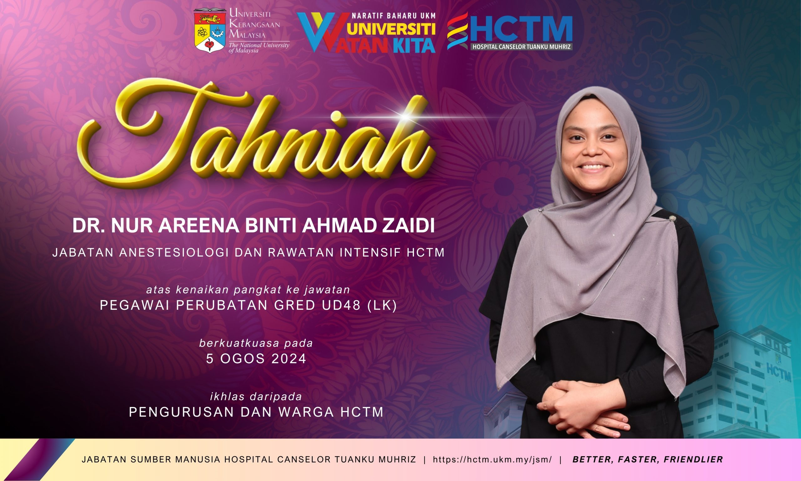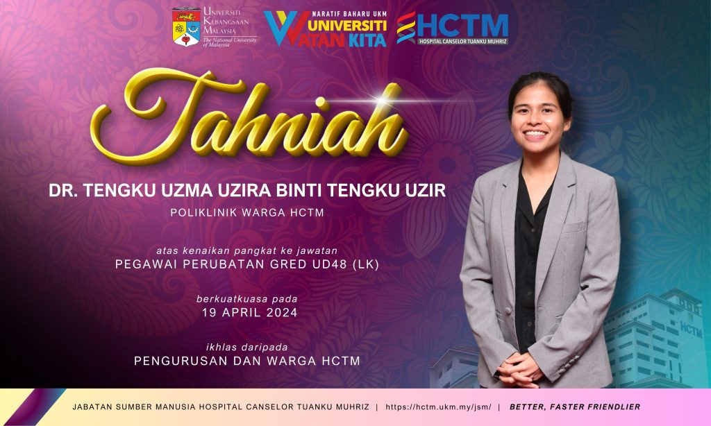 Hospital Canselor Tuanku Muhriz UKM ingin mempelawa warganegara Malaysia yang berkelayakan, komited serta berdedikasi untuk mengisi jawatan kenaikan pangkat pelantikan di HCTM.