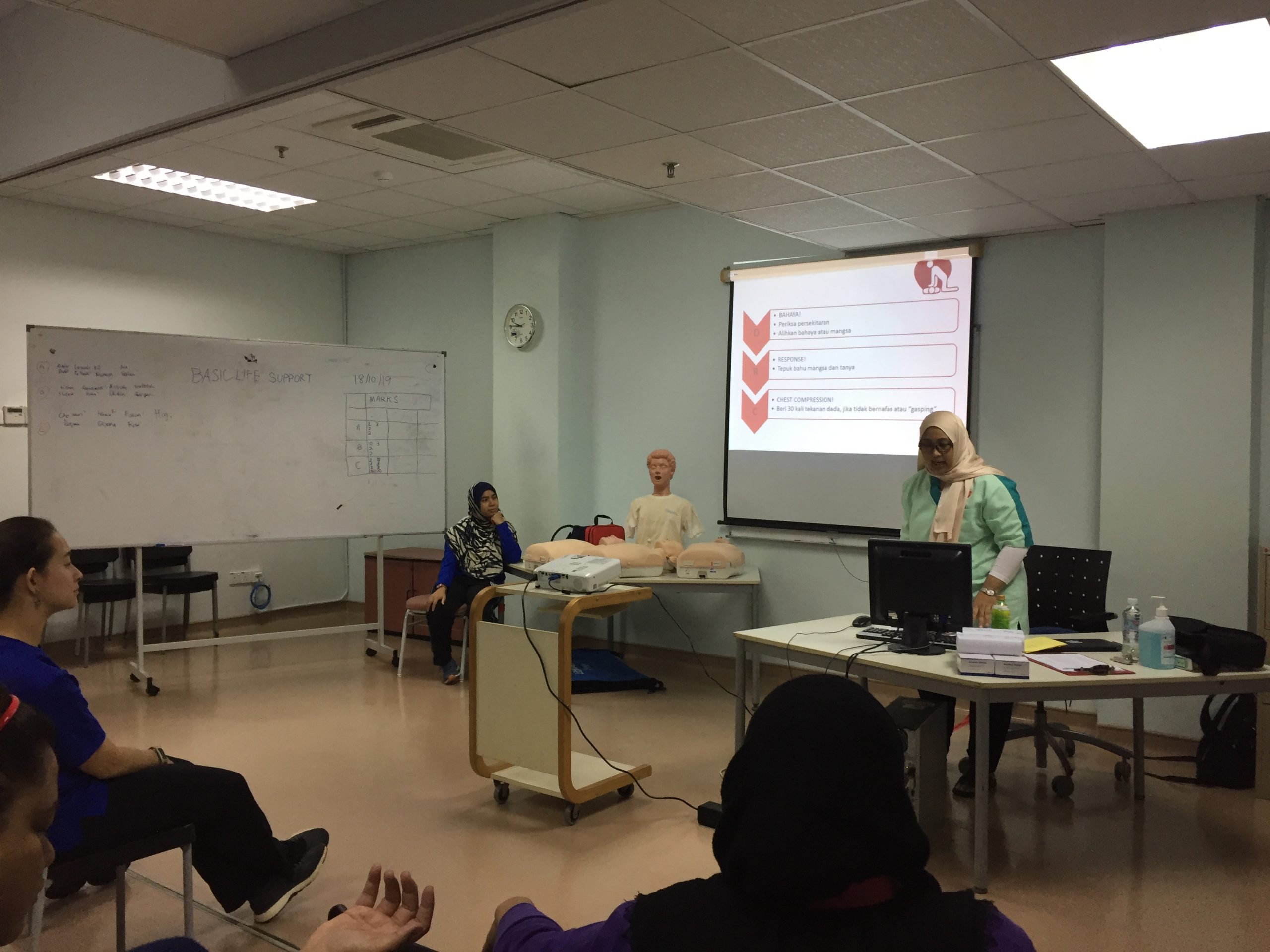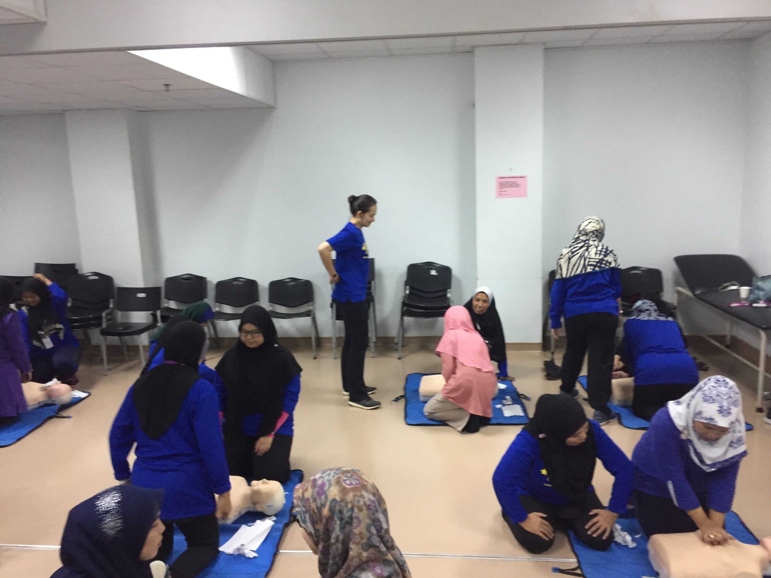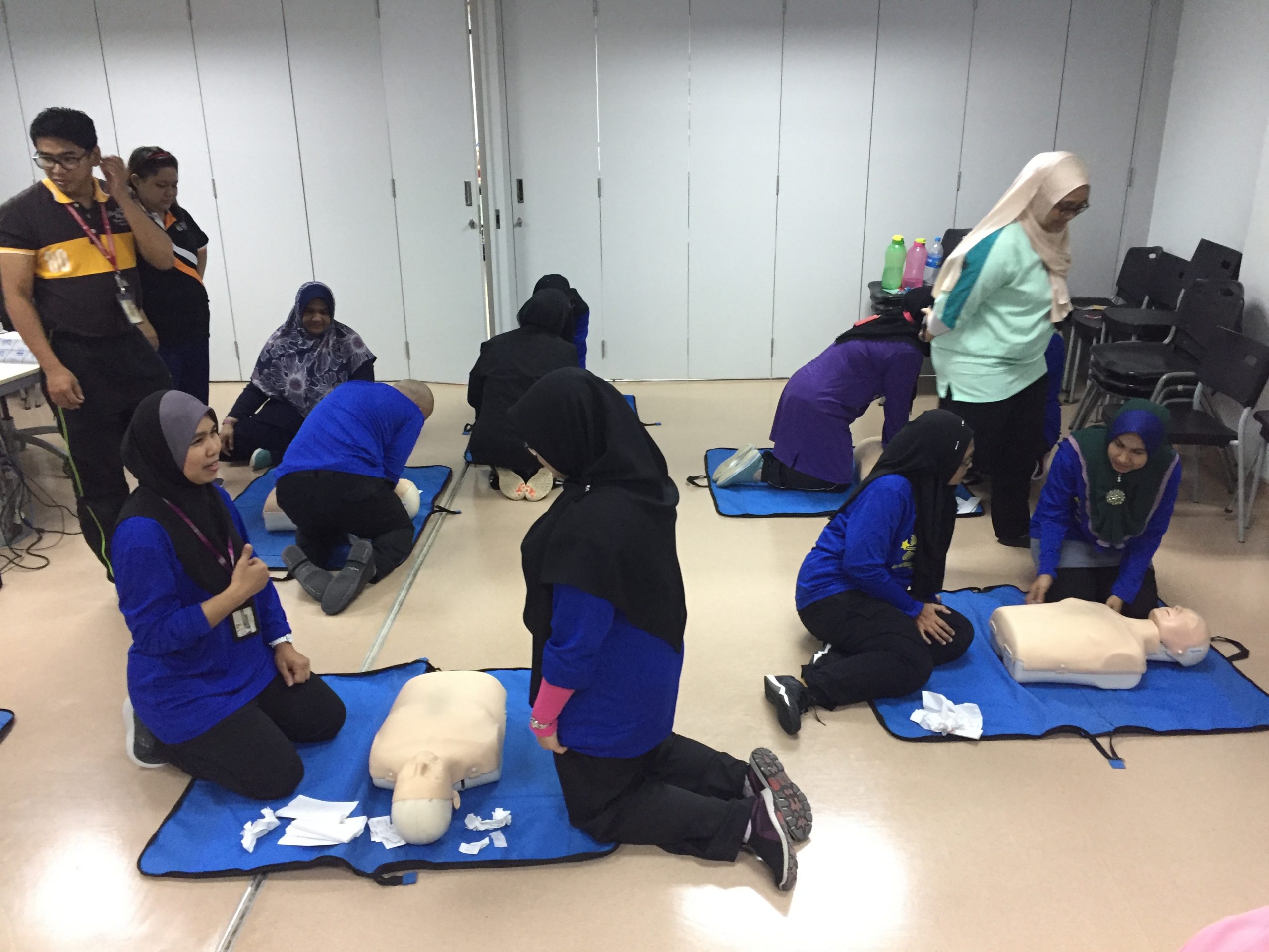 Sesi praktikal dijalankan dengan 10 manikin dewasa, 2 manikin kanak-kanak, 1 manikin ‘Choking’ dan 2 AED (Automated External Defibrillator). Sesi praktikal dalam kumpulan kecil membenarkan peserta masa untuk berlatih dan teknik boleh di pantau dan dibetulkan.