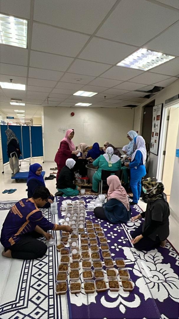 Penutup Ramadan tidak lengkap tanpa kita berkongsi rezeki di bulan Ramadan . Program Memasak Juadah Berbuka dilaksanakan bersama kakitangan Jabatan Perubatan Keluarga dan Klinik Primer HCTM berlangsung pada 13 Mac 2026 di Klinik Primer HCTM. Nasi briyani kari kambing menjadi juadah utama dan dikongsikan bersama kakitangan di HCTM . Jumlah makanan yang disediakan mencecah lebih kurang 300 bungkus. Dengan usahasama kakitangan dapat kita panjangkan rezeki bersama orang-orang yang tersayang.