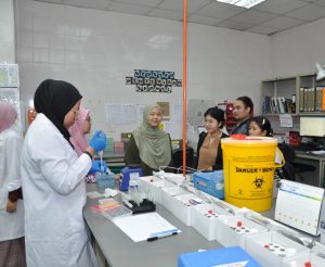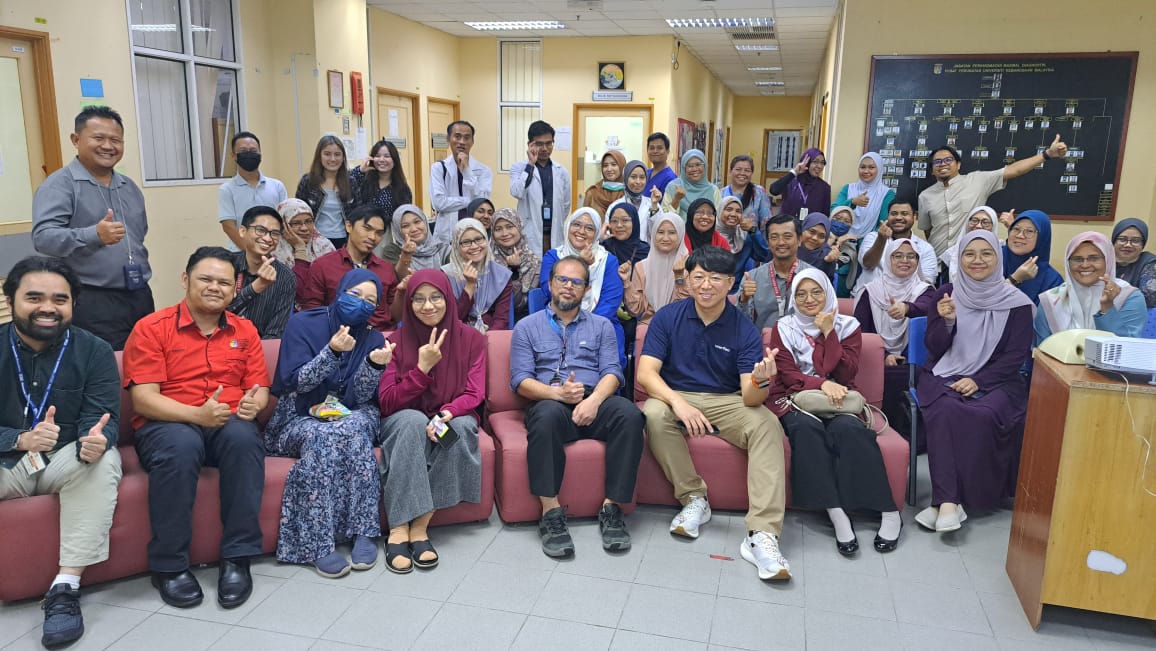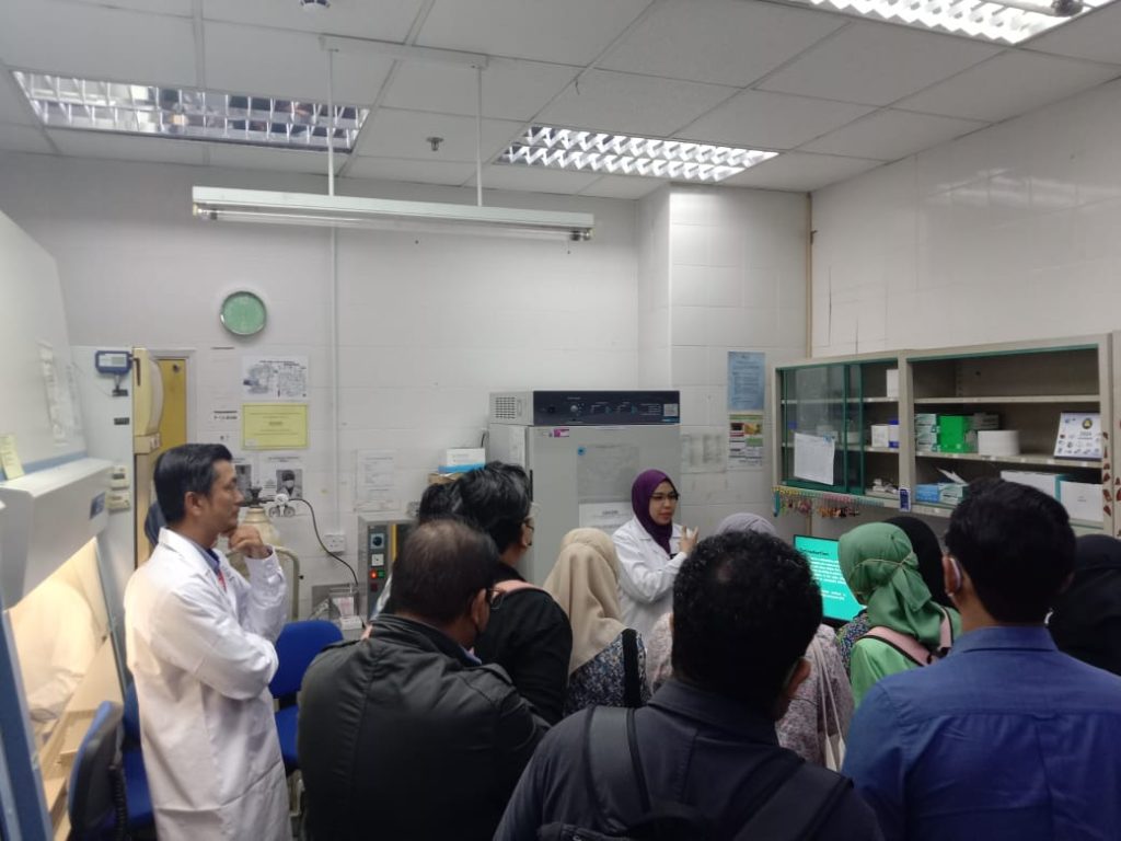Turut menyambut kehadiran pelawat adalah Dr. Munirah Md Mansor, Ketua Jabatan, Prof Madya Dr. Suria Hayati Md Pauzi, Ketua Unit Sitopatologi dan Dr. Azyani Yahya mewakili Ketua Unit Hostopatologi serta kakitangan JPMD.