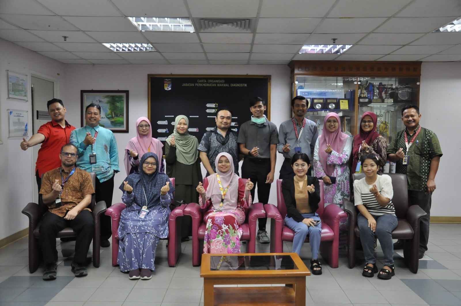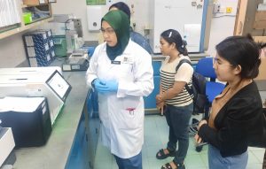 Turut menyambut kehadiran pelawat adalah Dr. Umi Kalsom @ Satariah Ali, Timbalan Ketua Jabatan, Pegawai-pegawai sains kanan dan wakil Gugusan Mikrobiologi JPMD.