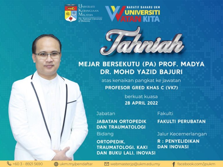 Tahniah Mejar Bersekutu (PA) Prof. Dr. Mohd Yazid Bajuri atas kenaikan pangkat ke jawatan Profesor Gred Khas C (VK7).