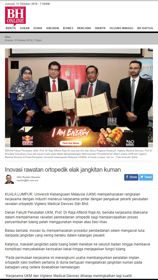 MAJLIS MENANDATANGANI MEMORANDUM PERSEFAHAMAN ANTARA UKM DENGAN VIGILENZ MEDICAL DEVICES SDN BHD.