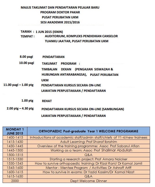 Salam hormat, Jabatan Jabatan Ortopedik & Traumatologi menjemput semua kakitangan dan keluarga serta pelajar ke: MAJLIS BERBUKA PUASA/IFTAR JABATAN ORTOPEDIK Jumaat 26/06/2015...