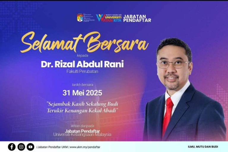 Selamat Bersara diucapkan kepada Dr. Rizal Abdul Rani bersara pada 31 Mei 2025. Seluruh warga Jabatan Ortopedik & Traumatologi mendoakan...