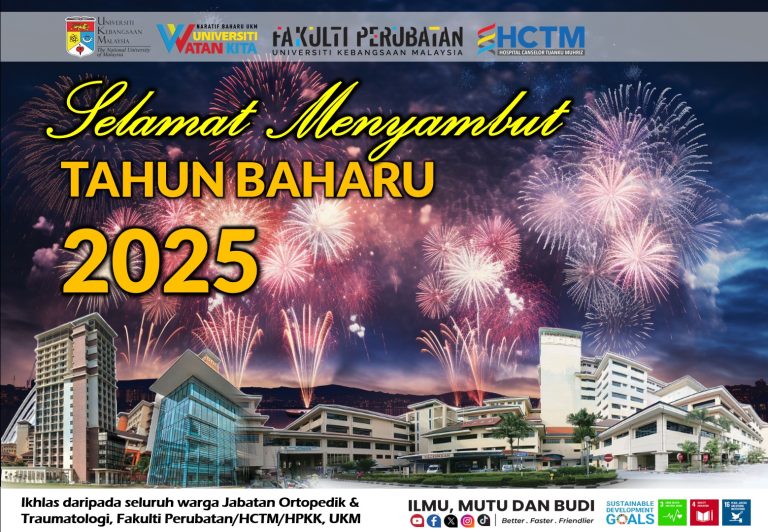 Selamat Menyambut Tahun Baharu 2024. Tulus ikhlas daripada Warga Jabatan Ortopedik & Traumatologi Fakulti Perubatan / Hospital UKM