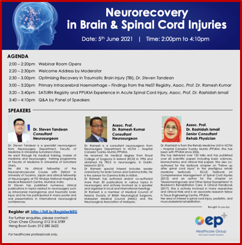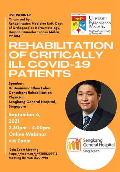 6 SEPTEMBER 2021![]() | CME Webinar – Collaboration with Rehabilitation Physician, Sengkang General Hospital, Singapore 6/9/2021 Topic: Rehabilitation of Critically Ill Covid-19 Patients |