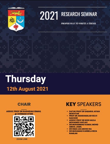 12 OGOS 2021![]() | Research related activities 2021 Research Seminar - Proper Way To Write A Thesis 12 Ogos 2021 |