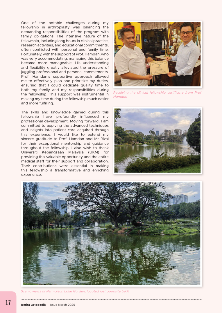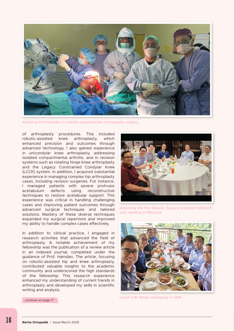 17 Mar 2025 Fellowship Klinikal dalam Arthroplasty (Clinical Fellowship in Arthroplasty: Embracing Cutting-Edge Technology in Malaysia) 17 Mar 2025