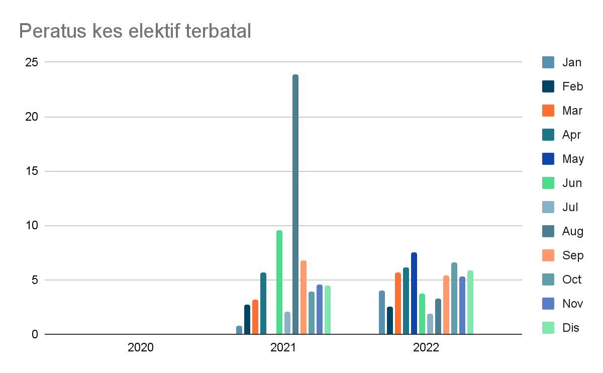 - Peratus pembatalan kes pembedahan elektif kurang daripada 10%