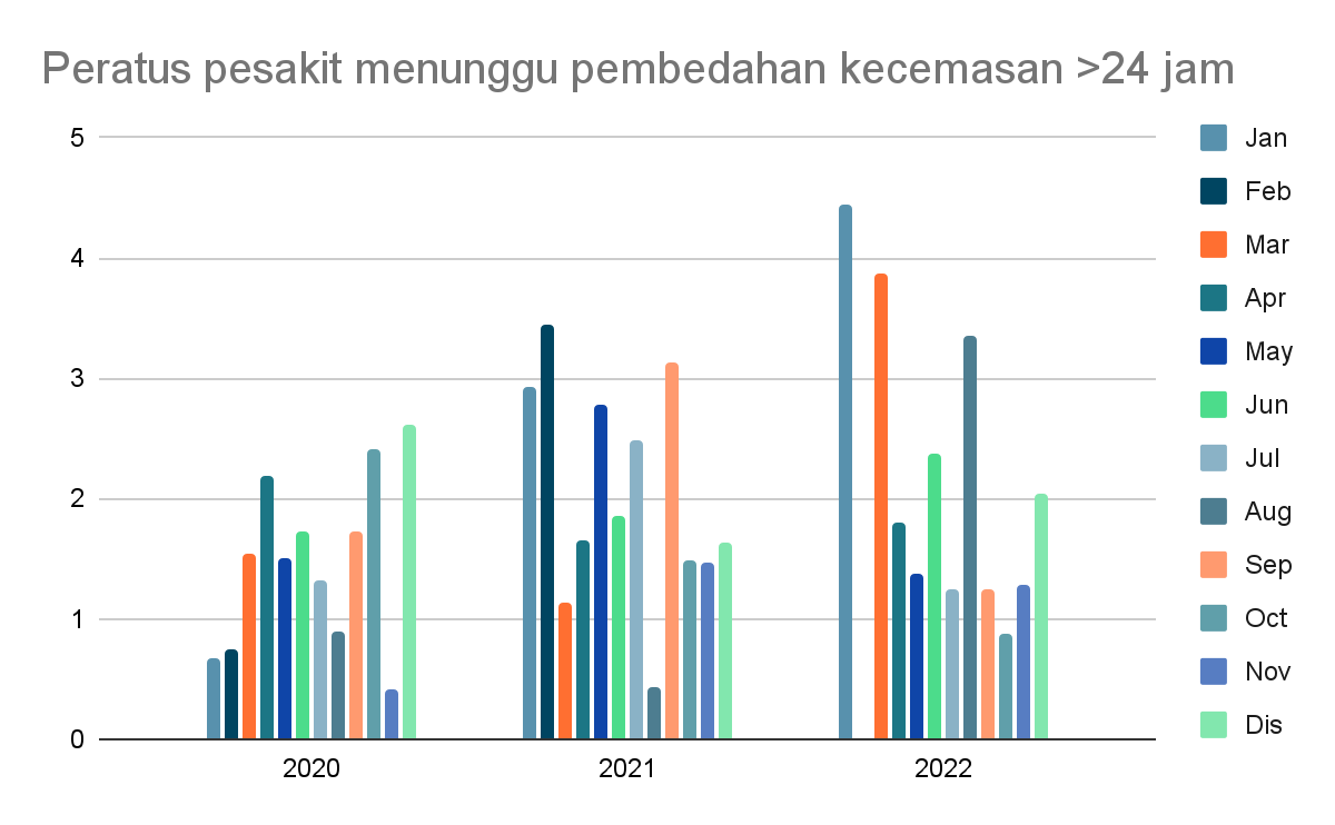 - Peratus pesakit yang menjalani pembedahan kecemasan dan terpaksa menunggu lebih 24 jam adalah kurang daripada 1%