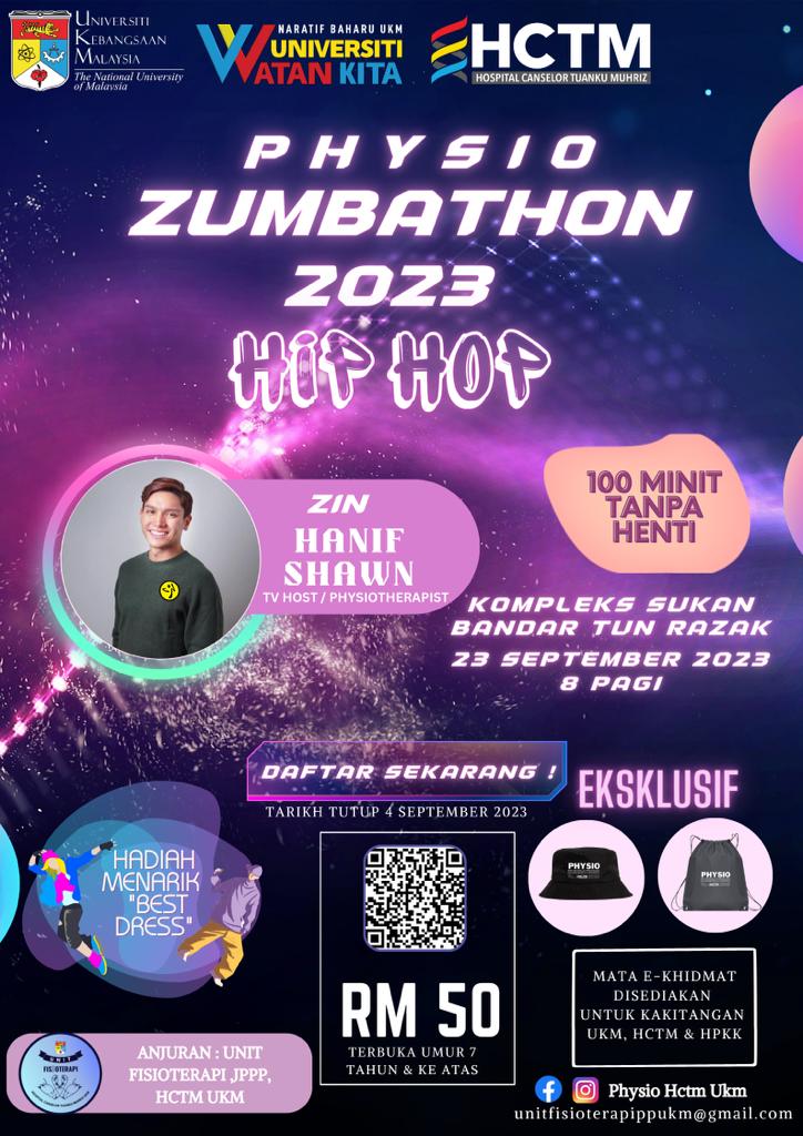 Assalamualaikum & salam sejahtera, Bersempena Sambutan Hari Fisioterapi 2023, Unit Fisioterapi HCTM,UKM ingin mempelawa anda semua untuk menyertai acara “Zumbathon...