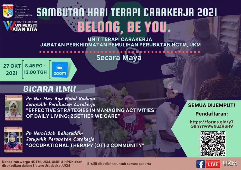 Sempena dengan sambutan Hari Terapi Carakerja 2021 bertemakan 'Belong, Be You.' Unit Terapi Carakerja Jabatan Perkhidmatan Pemulihan Perubatan HCTM menganjurkan...