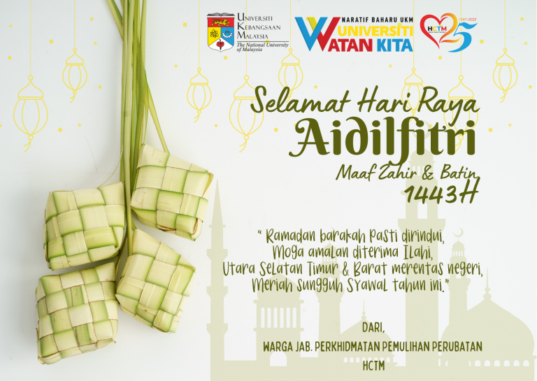 Jabatan Perkhidmatan Pemulihan Perubatan mengucapkan Selamat Hari Raya Aidilfitri kepada semua warga HCTM dan UKM.