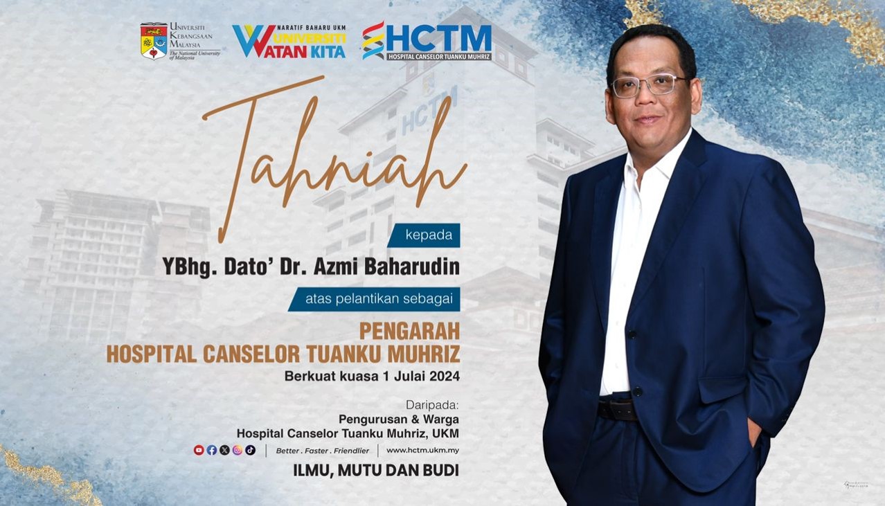 3 Jul 2024 Tahniah YBhg. Dato’ Dr. Azmi Baharudin atas pelantikan sebagai Pengarah Hospital Canselor Tuanku Muhriz UKM berkuatkuasa 1 Julai 2024.
