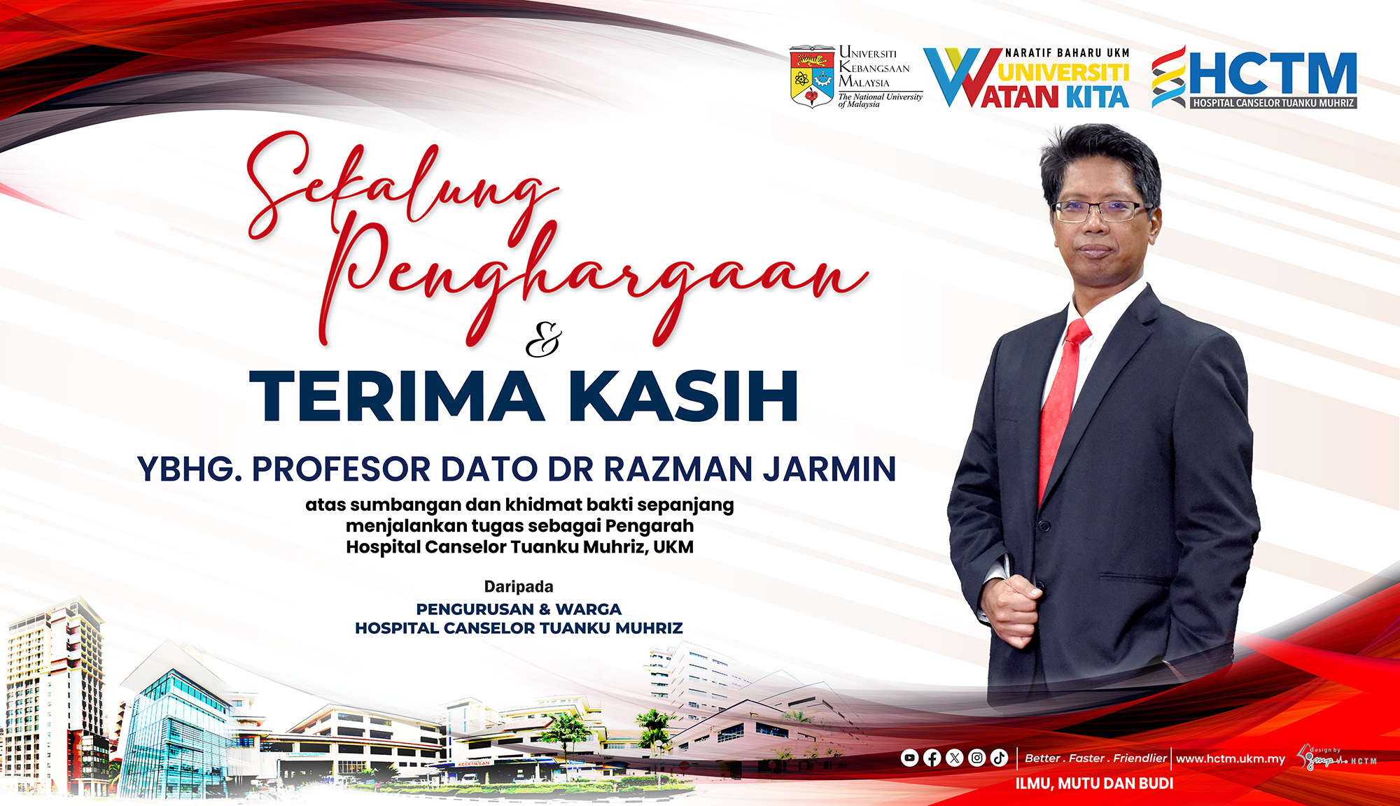 3 Jul 2024 Sekalung Penghargaan dan Terima Kasih YBhg. Prof. Dato’ Dr. Razman Jarmin atas sumbangan dan khidmat bakti sepanjang menjalankan tugas sebagai Pengarah Hospital Canselor Tuanku Muhriz UKM.