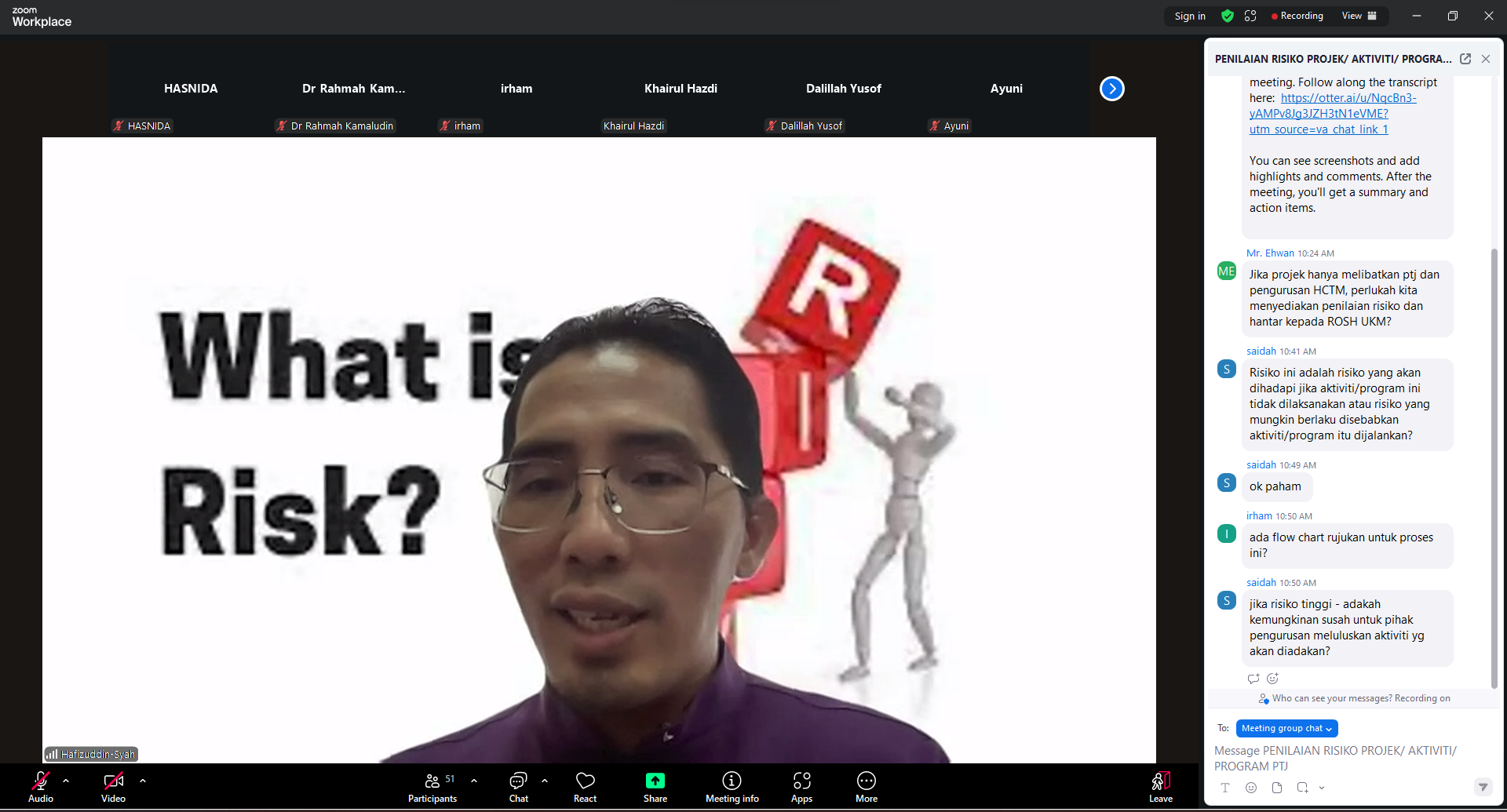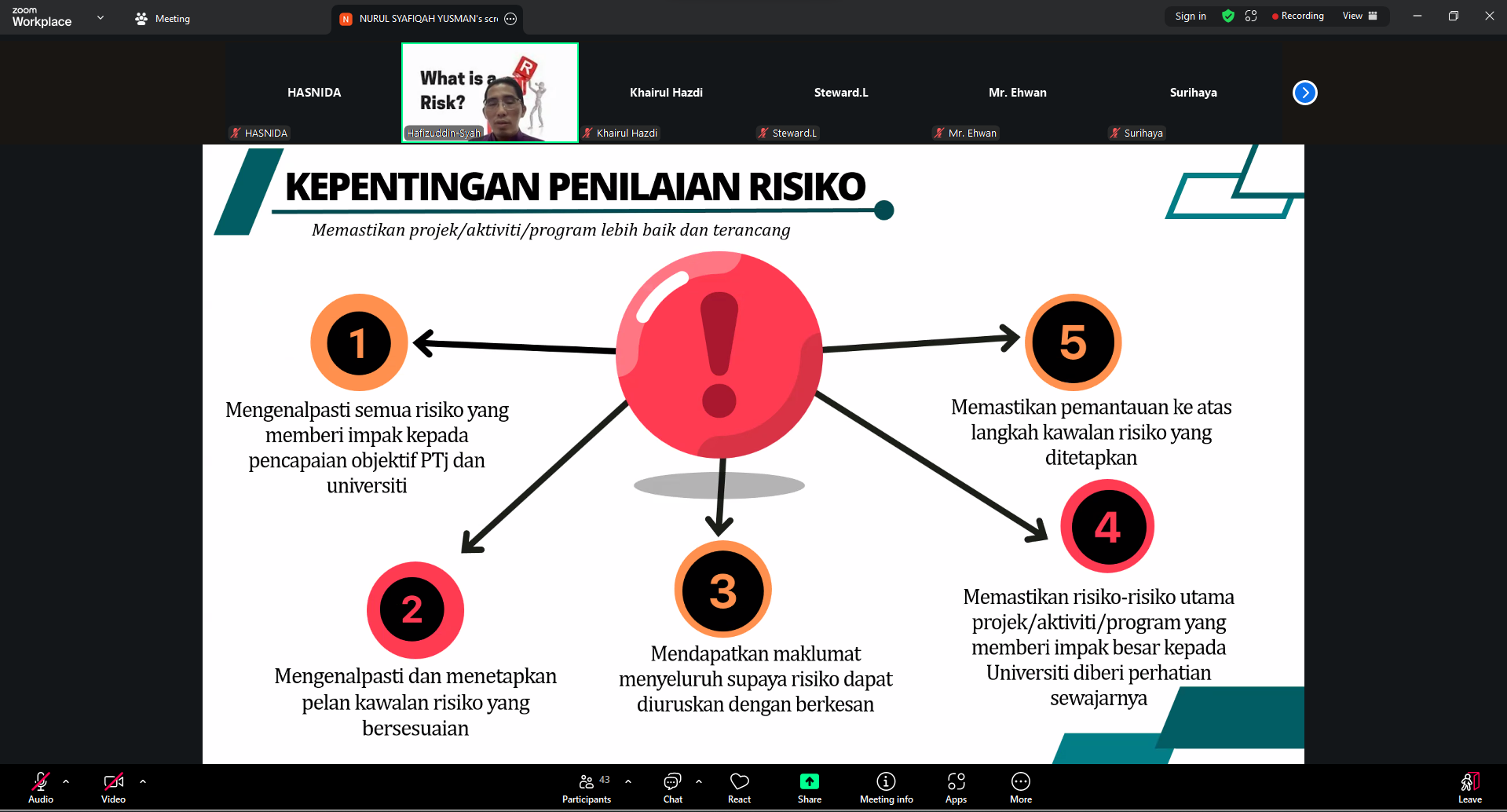 26 Sep 2025 BENGKEL PENILAIAN RISIKO BAGI PROJEK/ AKTIVITI/ PROGRAM PTJ 26 Sep 2025 BENGKEL PENILAIAN RISIKO BAGI PROJEK/ AKTIVITI/ PROGRAM PTJ Tarikh: 26 September 2025 Tempat: Aplikasi ZOOM