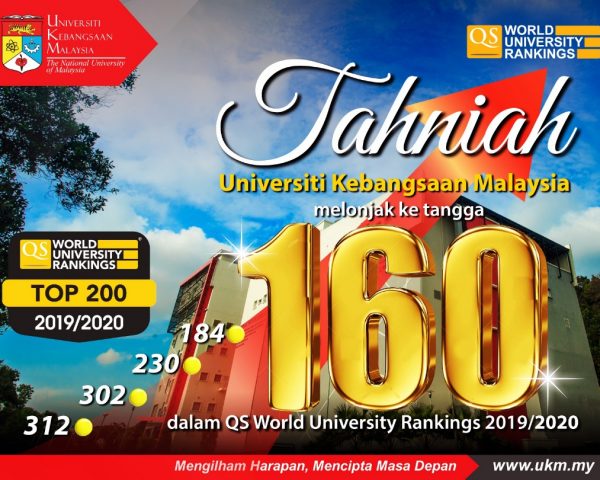Congratulations UKM Congratulations to the National University of Malaysia at 160th in the QS World University Rankings 2019/2020, rising to 24th compared to last year’s 184th. UKM is ranked in the top 200 Universities in the world.