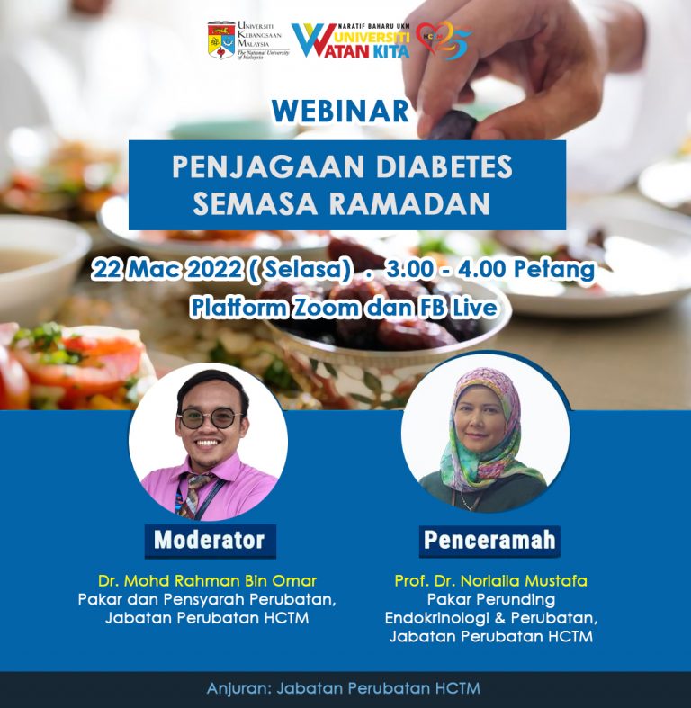 Sempena Jubli Perak HCTM dan kehadiran Bulan Ramadan tidak lama lagi, Jabatan Perubatan HCTM menganjurkan webinar bertajuk 'Penjagaan Diabetes Semasa...