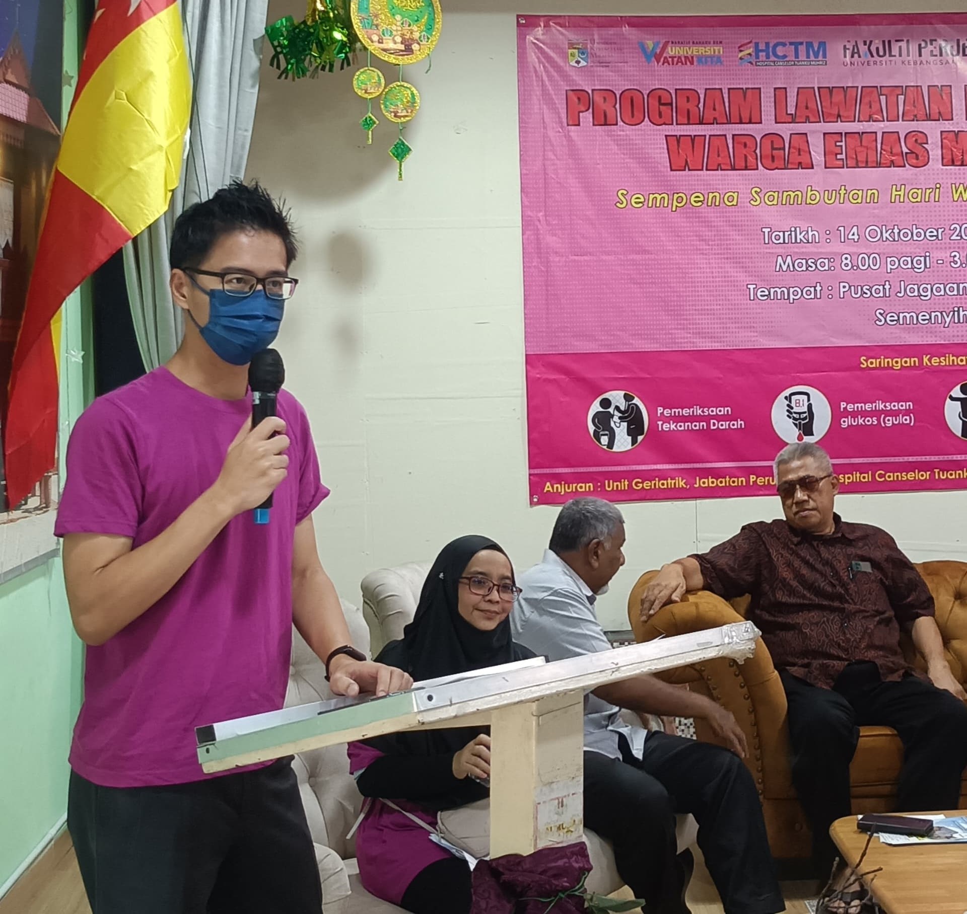 Semenyih, 14 Oktober 2023 –Unit Geriatrik salah satu daripada 12unit di Jabatan Perubatan telah berjaya melaksanakan Program Khidmat Masyarakat iaitu Program Lawatan Rumah Jagaan Mahmudah di Semenyih, Selangor pada 14 Oktober 2023 (Sabtu) bermula pada 8 pagi sehingga 3 petang. Majoriti peserta dan barang- barang telah dibawa menaiki bas ke pusat jagaan . Majlis perasmian telah disempurnakan oleh Dr. Tan Juen Kiem iaitu Pakar Klinikal Geriatrik sebagai pengerusi program lawatan. Program lawatan ini bertemakan Kami Sayang Warga Emas telah mendapat peruntukan daripada KPT Prihatin, Madani , Hospital Canselor Tuanku Muhriz.dan Persatuan Geriatrik Malaysia.