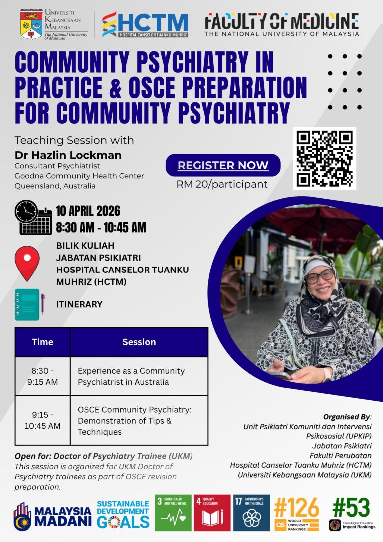 Don’t miss this! 🚀 Community Psychiatry OSCE Revision Date: 10th April 2026 Venue: Bilik Kuliah, Psychiatry department HCTM Participants: Open...