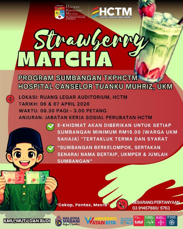 Dimaklumkan bahawa pihak Jabatan Kerja Sosial Perubatan HCTM akan menganjurkan Program Infaq Ramadan TKPHCTM 1447H / 2026 untuk Tabung Kebajikan...