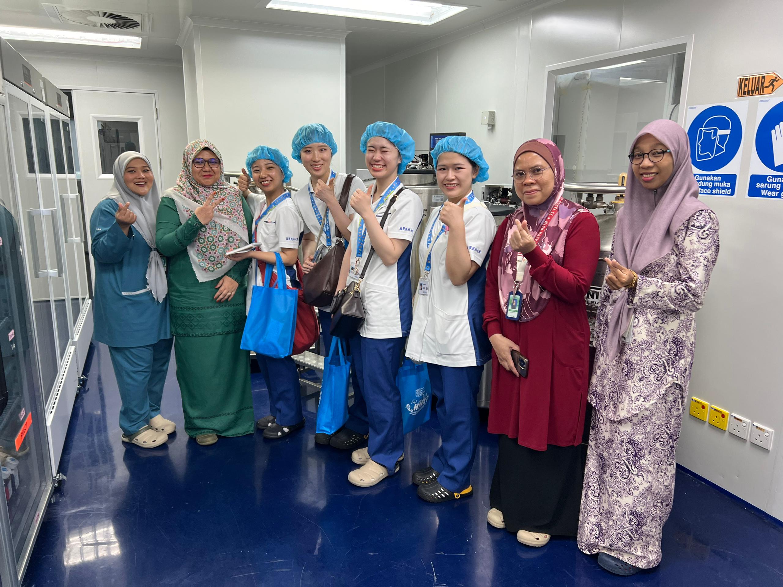 Kuala Lumpur, 24 April- Lawatan ke Pusat Terapi Sel dan Wad Transplant bagi Program Mobiliti Pelajar Kejururawatan Universiti Shiga, Jepun telah diadakan pada 23 April 2025 melibatkan Unit Wad Transplantasi Sel Stem dan Makmal PINTAS. Pelajar diberikan pendedahan langsung mengenai penjagaan pesakit transplantasi, aliran kerja klinikal, serta amalan keselamatan. Di makmal, mereka turut mempelajari operasi asas makmal GMP, pengendalian sampel dan kepentingan kawalan kualiti dalam terapi sel.