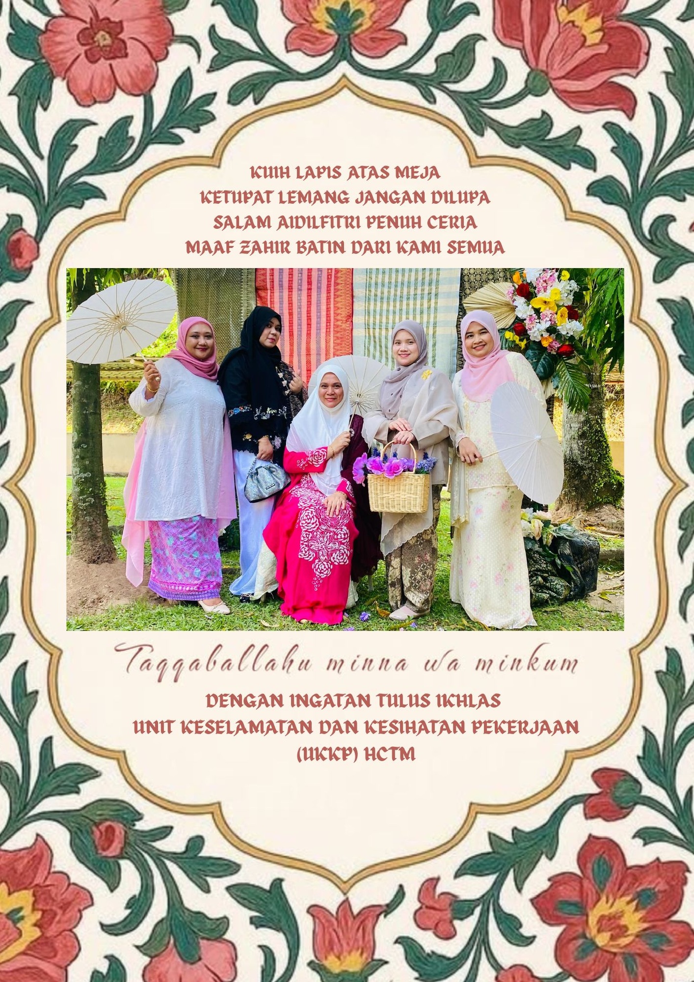 Unit Keselamatan dan Kesihatan Pekerjaan HTCM mengucapkan Selamat Hari Raya Aidilfitri kepada semua warga kerja HCTM. Semoga Aidilfitri ini membawa kebahagiaan dan kesejahteraan kepada semua.