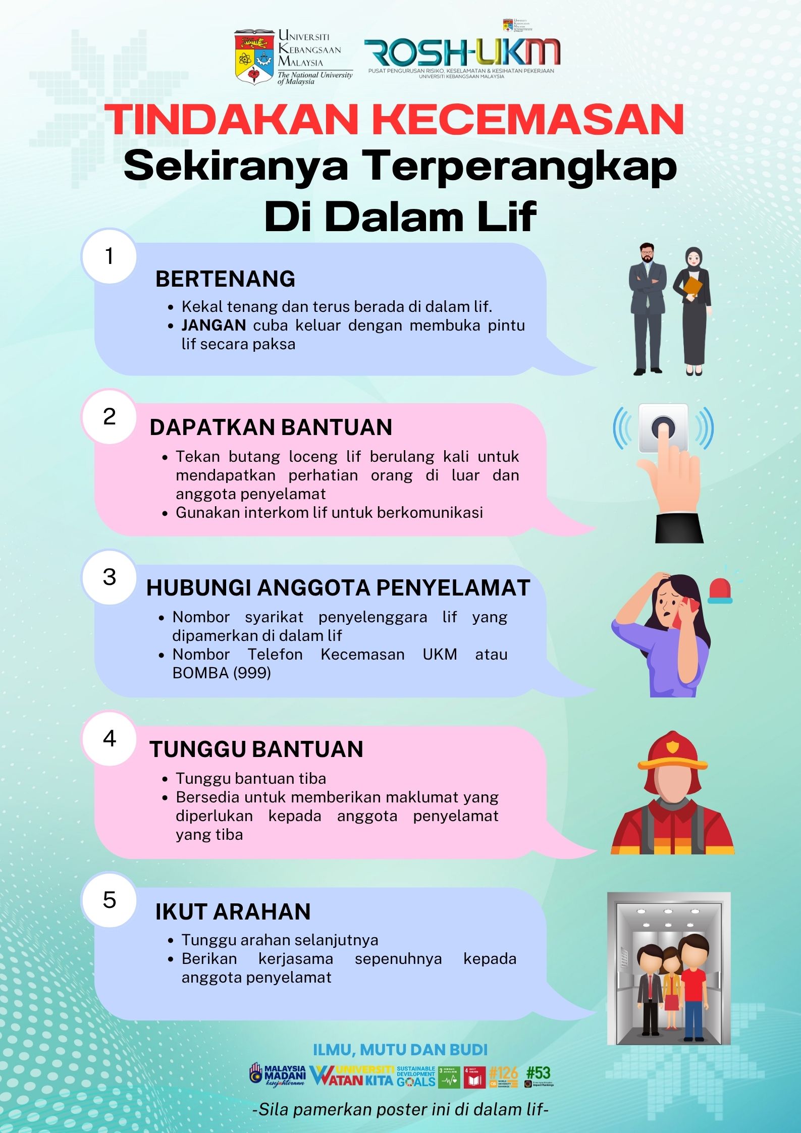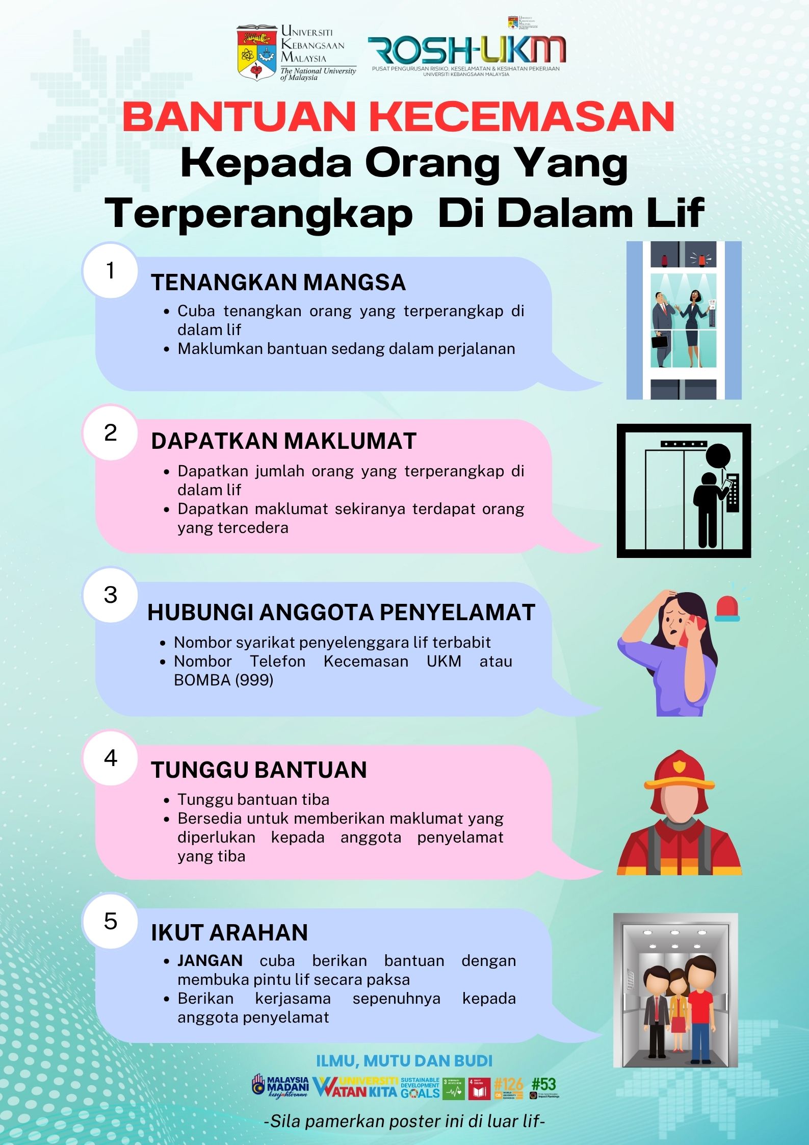 MAKLUMAN : ROSH-UKM – POSTER CAKNA KESELAMATAN: TINDAKAN & BANTUAN KECEMASAN SEKIRANYA TERPERANGKAP DI DALAM LIF
