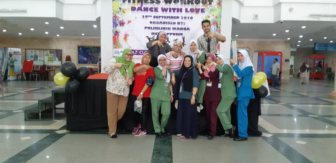 Program Fitness Workout ‘Dance With Love’ anjuran Poliklinik Warga HCTM telah diadakan pada 29 September 2018 di Lobi Utama HCTM.